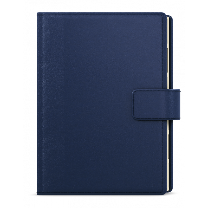 Elegantní denní diář ve formátu A5 se stylovým a znovupoužitelným obalem v modré barvě. Praktické vnitřní uspořádání nabízí množství přihrádek na vizitky, poutko na tužku a bezpečné magnetické zavírání. Diář bude působit luxusně a profesionálně – ideální volba pro práci, podnikání i osobní organizaci.