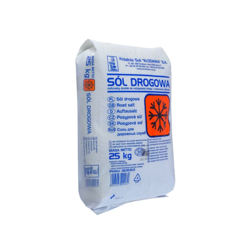 Technická posypová a rozmrazovací sůl, balení 25 kg.