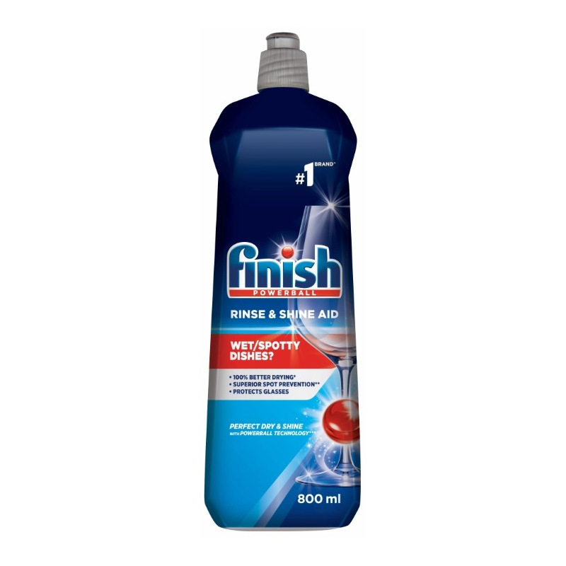 Finish na sklo a nádobí beze skvrn, které září diamantovým leskem. Dokonale odstraňuje vodní rezidua (kapky vody), zanechává diamatový lesk, účinkuje po dobu cyklu oplachování, odstraňuje jak mycí prostředek tak zbytky jídla z nádobí. Urychluje schnutí nádobí, zajišťuje důkladné opláchnutí a potěší vás i svěží vůní.