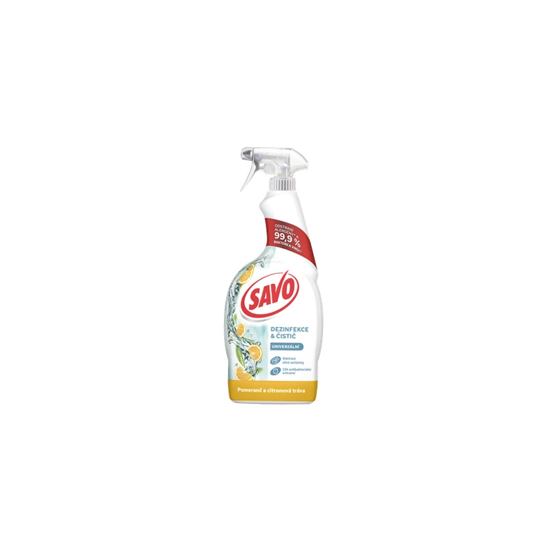 Savo univerzální dezinfekční sprej Pomeranč je ideální pro každodenní dezinfekci a čištění všech omyvatelných povrchů v domácnosti. Balení 700 ml.