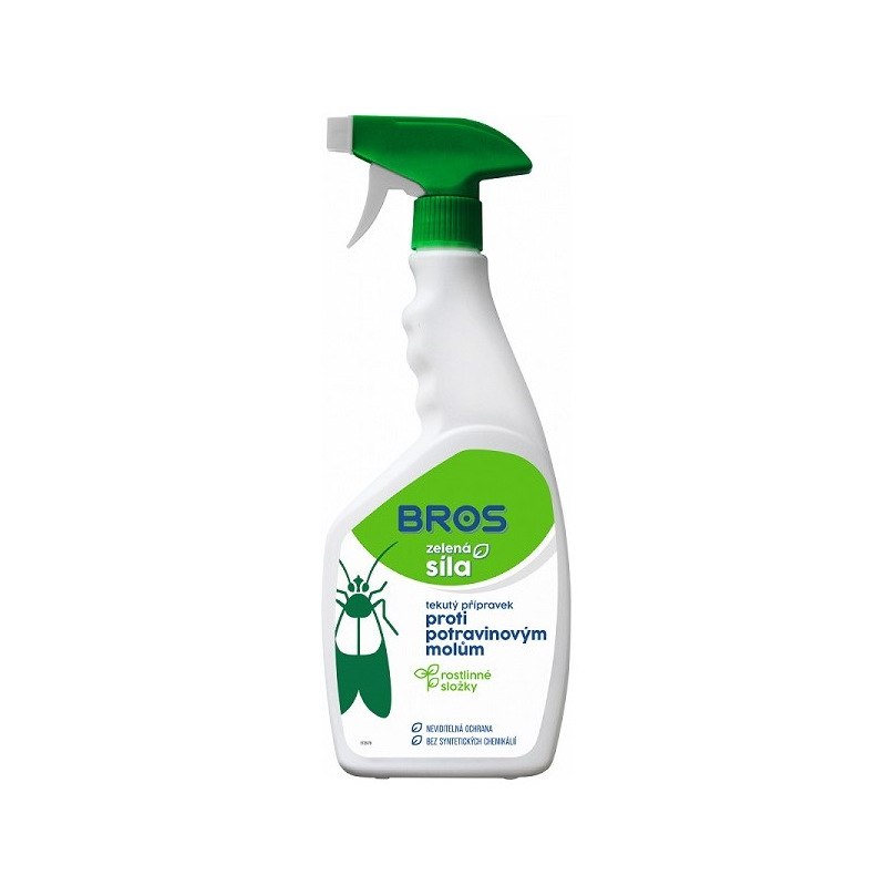 Bros Zelená síla je tekutý přípravek proti molům založený na přírodních složkách. Kapalina na bázi rostlinných složek je vhodná proti molům zavíječe paprikového a lze ji použít v kuchyni, spížích, skladovacích prostorech nebo přímo v kuchyňských skříňkách.