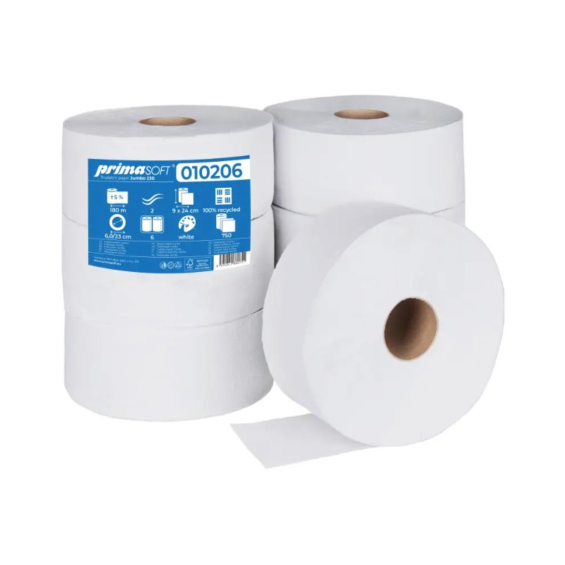 Toaletní papír JUMBO PrimaSoft 230 mm, 2-vrstvý, recyklovaný, bílý