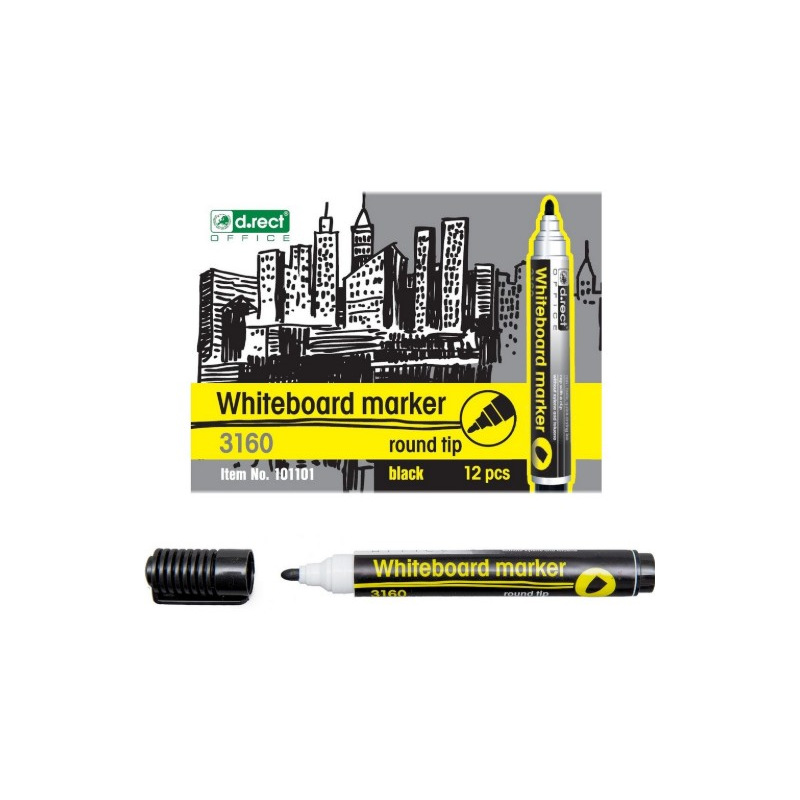 Popisovač stíratelný za sucha, černá barva. Popisovače jsou určeny pro psaní na bílé tabule. Bezpečný inkoust na alkoholové bázi, neobsahuje xylen ani toluen.