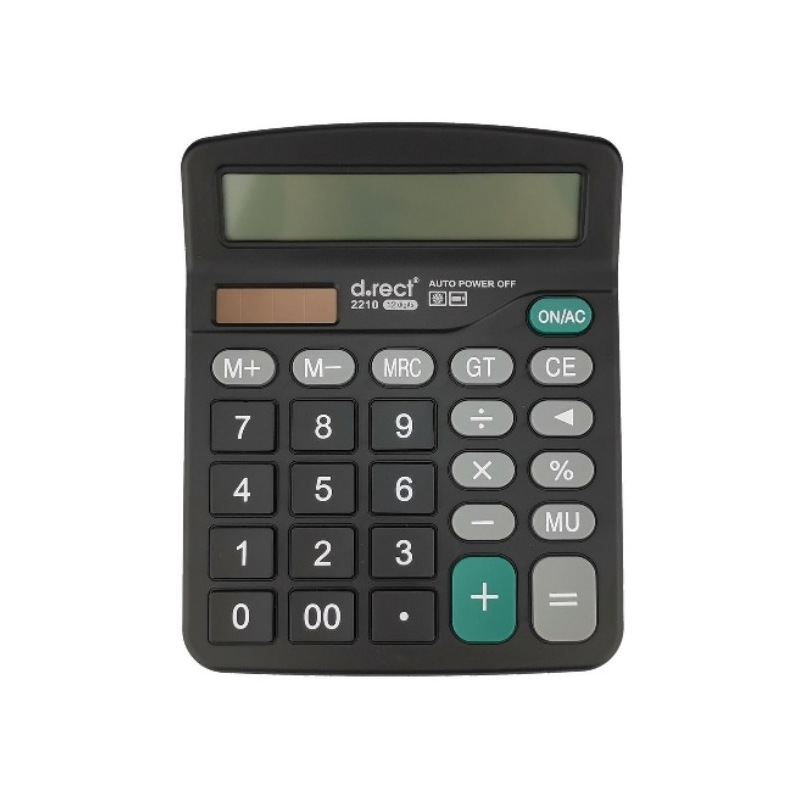 Kancelářská kalkulačka D.RECT 2210 s velkými tlačítky, v černé barvě.