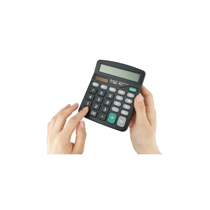 Praktická kancelářská kalkulačka v černém barvě. Je vybavena 12místným displejem s pevným úhlem sklonu. Napájení dvakrát alkalickou baterií nebo solární baterií. Disponuje velkými pohodlnými tlačítky a funkcí automatického vypnutí – automaticky se vypne, pokud do 10 minut nestisknete žádné tlačítko.