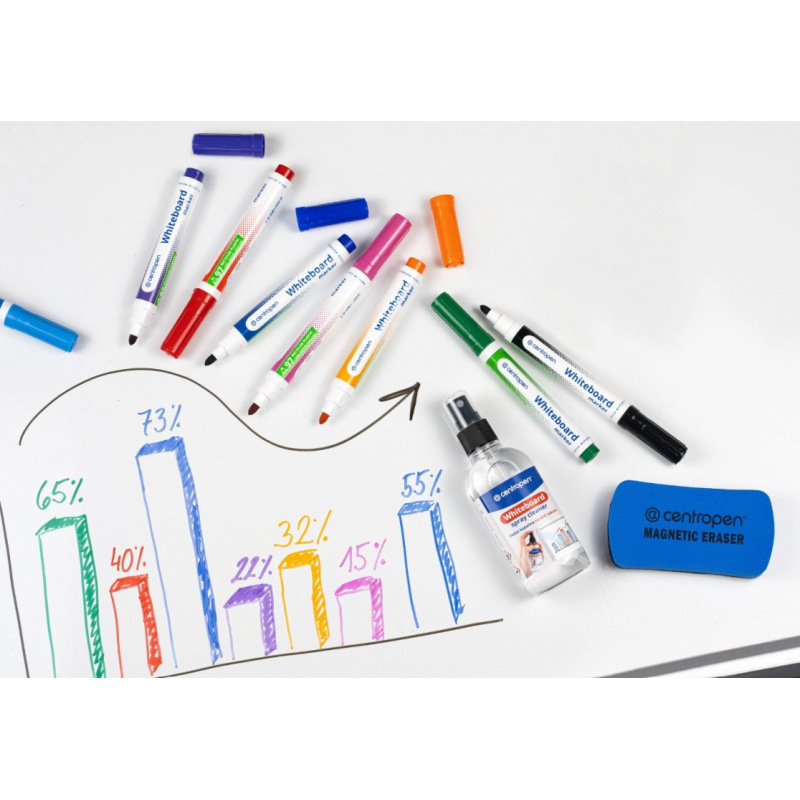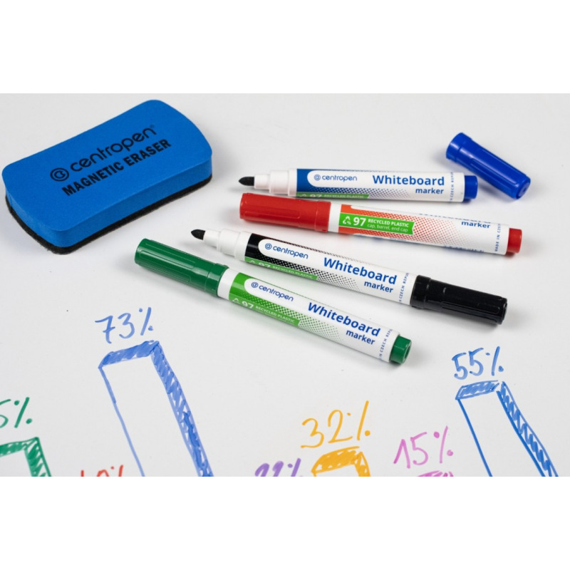 Oblíbený značkovač / popisovač na bílé tabule Centropen 8559. Vhodný na smaltovaný povrch a na další neporézní povrchy, např. PVC, sklo, porcelán.