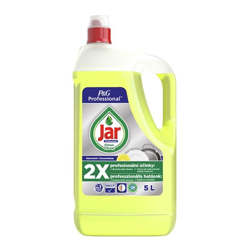 Prostředek na ruční mytí nádobí Jar Professional Citron je vhodný na všechny druhy nádobí od nerezu až po porcelán. Má vynikající odmašťovací účinek a efektivně odstraňuje zbytky potravin z hrnců, pánví, příborů, talířů a ostatního kuchyňského vybavení. S příjemnou vůní citrónu. V ekonomickém 5 litrovém balení.