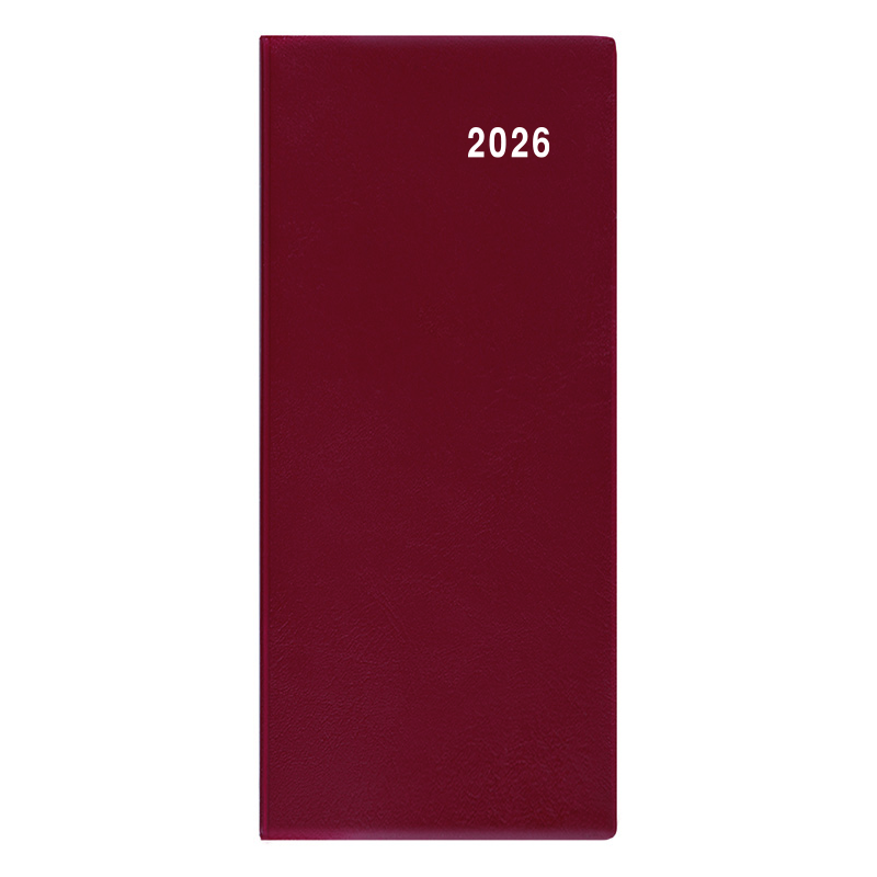 Jednoduchý a praktický měsíční diář vyrobený z jemného hladkého materiálu s polomatným povrchem v barvě bordó. Ideální pro každého, kdo si oblíbil měkkou šitou vazbu.