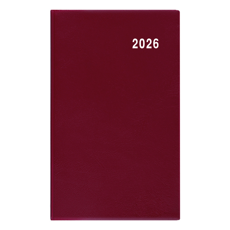 Jednoduchý a praktický měsíční diář vyrobený z jemného hladkého materiálu s polomatným povrchem v barvě bordó. Ideální pro každého, kdo si oblíbil měkkou šitou vazbu.