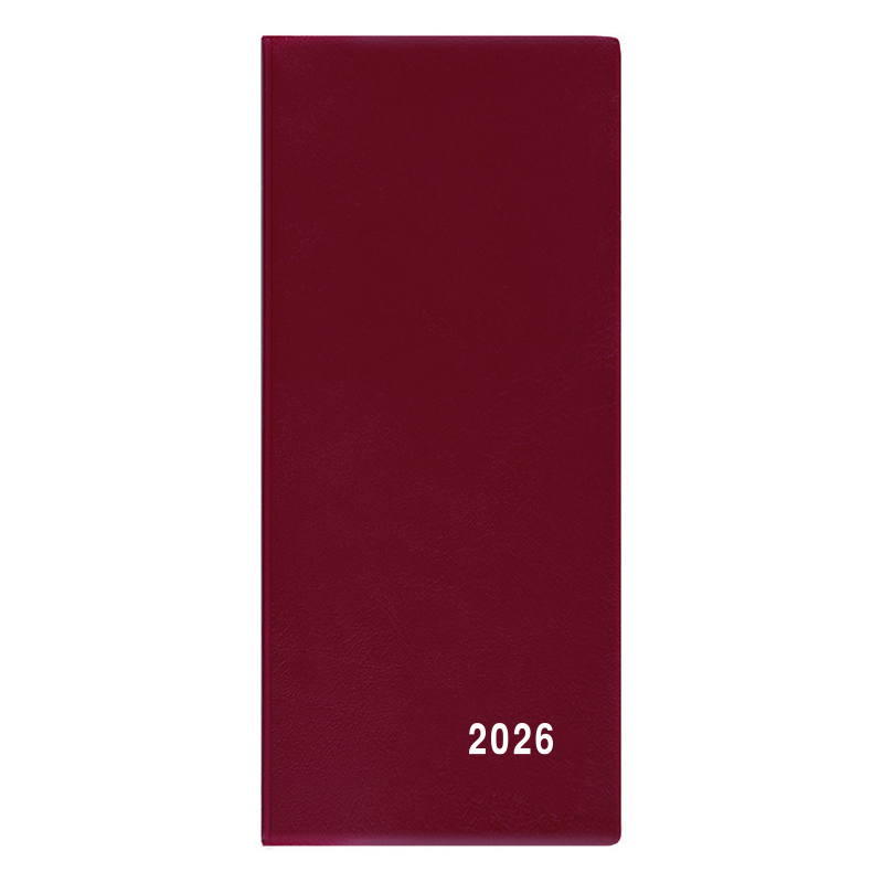 Jednoduchý a praktický měsíční diář vyrobený z jemného hladkého materiálu s polomatným povrchem v barvě bordó. Ideální pro každého, kdo si oblíbil měkkou šitou vazbu.
