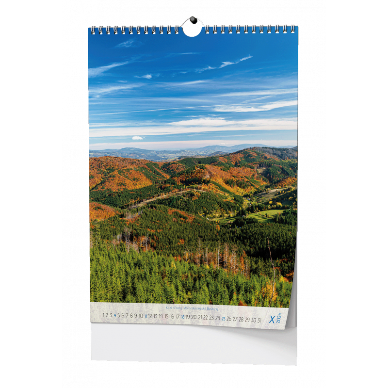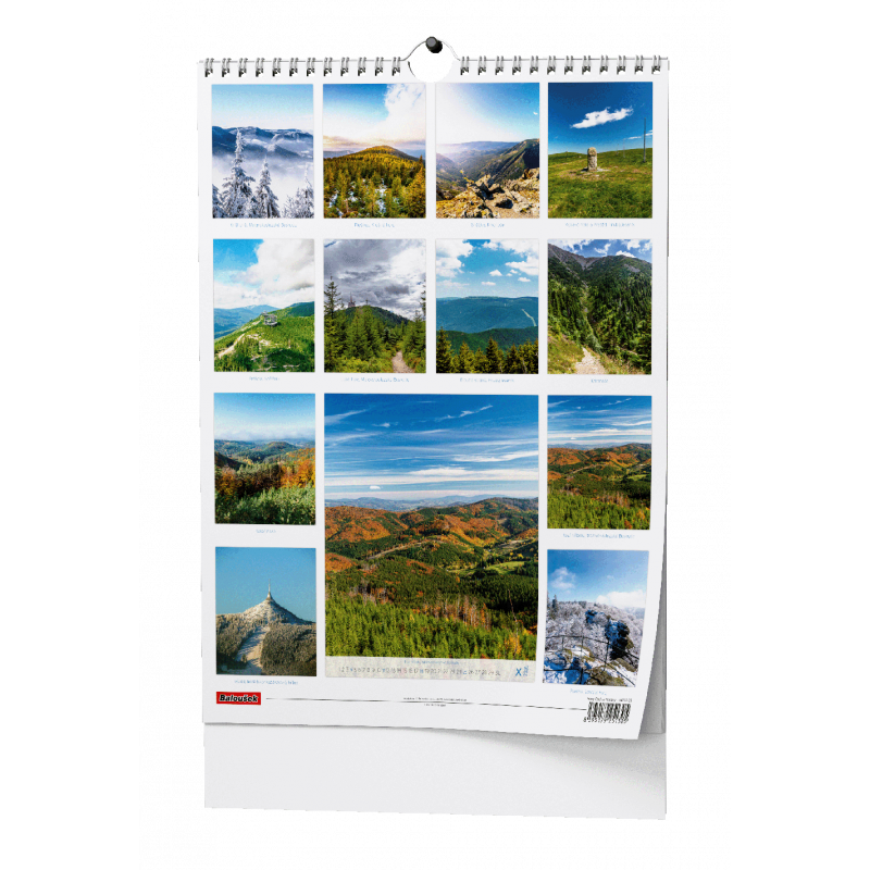 Nástěnný kalendář s obrázky krásných hor Čech a Moravy.