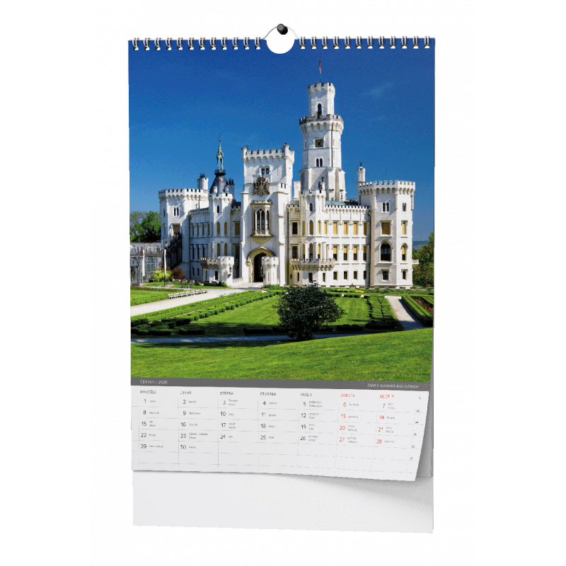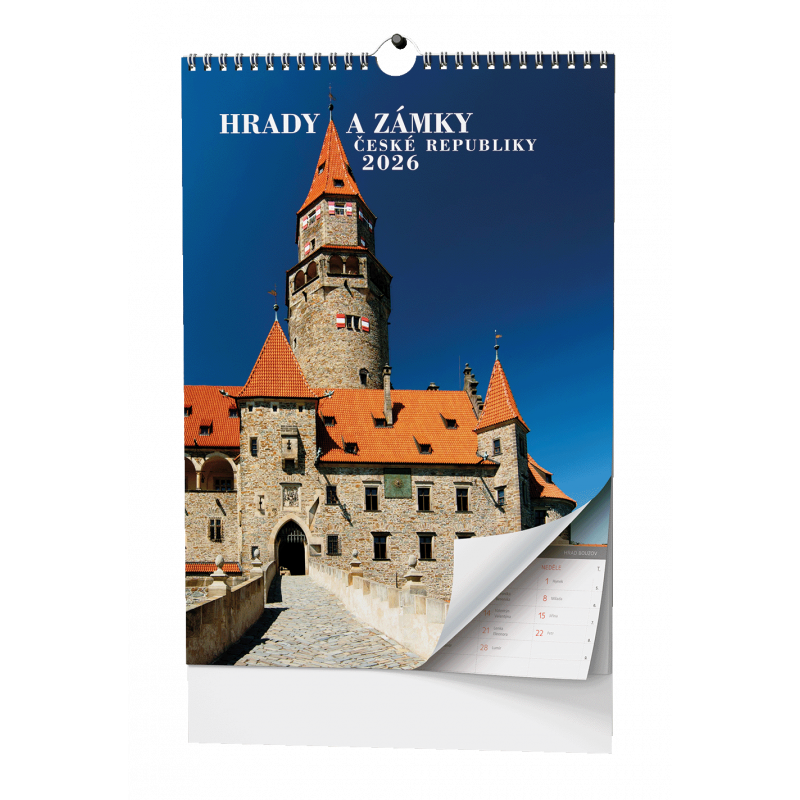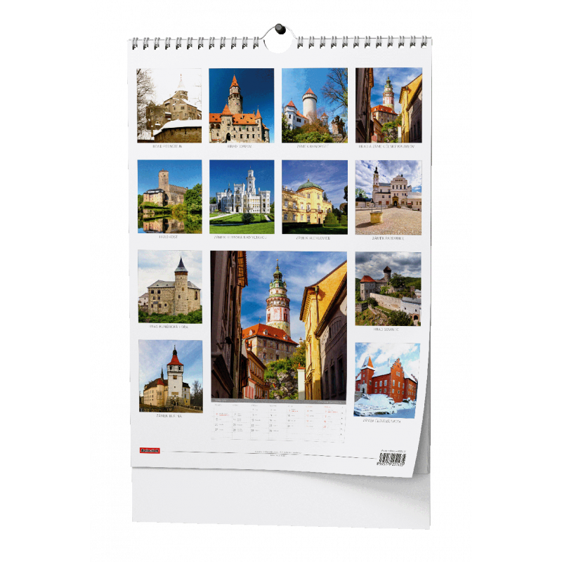 Nástěnný kalendář s obrázky hradů a zámků naší země.