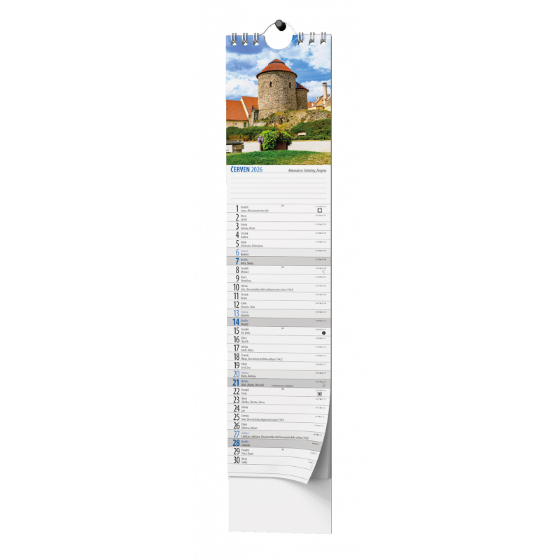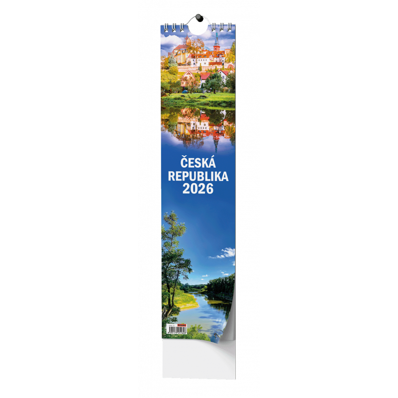 Netradiční nástěnný kalendář ve formátu kravaty s působivými obrázky České republiky.