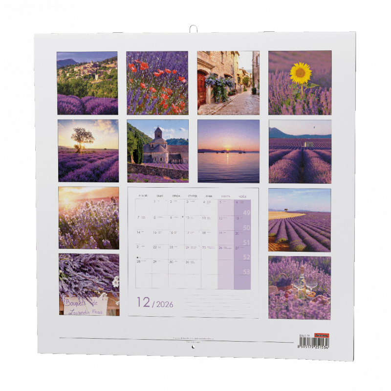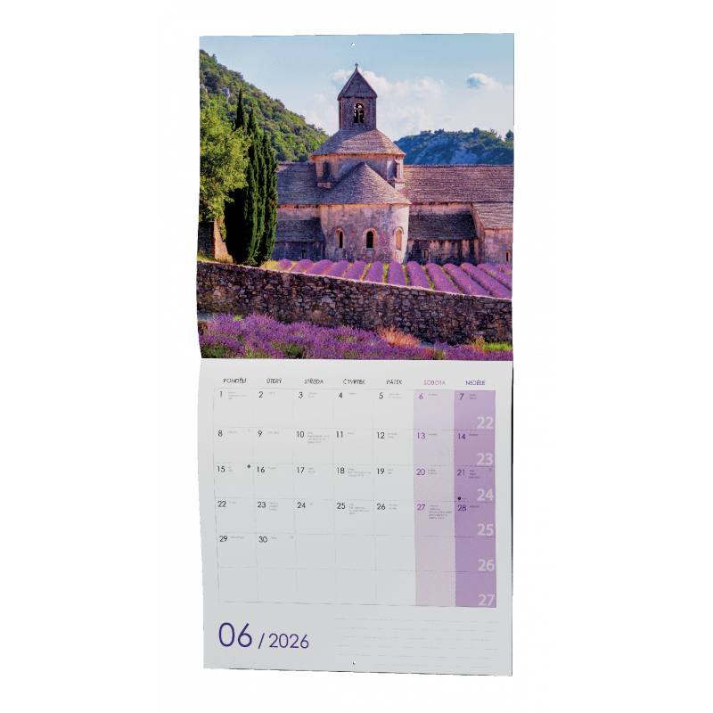 Nástěnný kalendář s měsíčním kalendáriem, v moderním formátu LP desky ve stylu Provence.