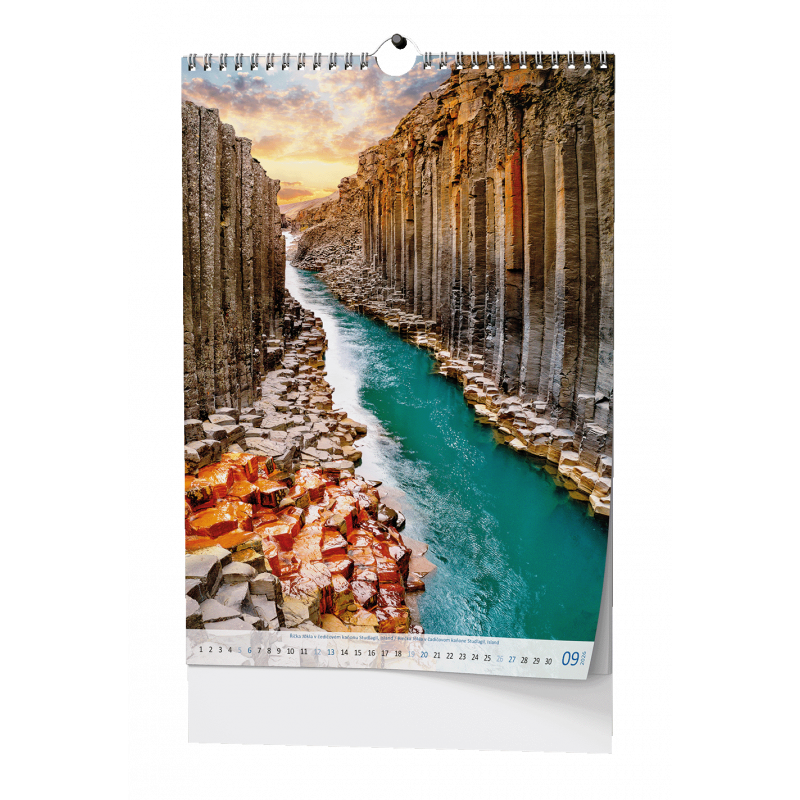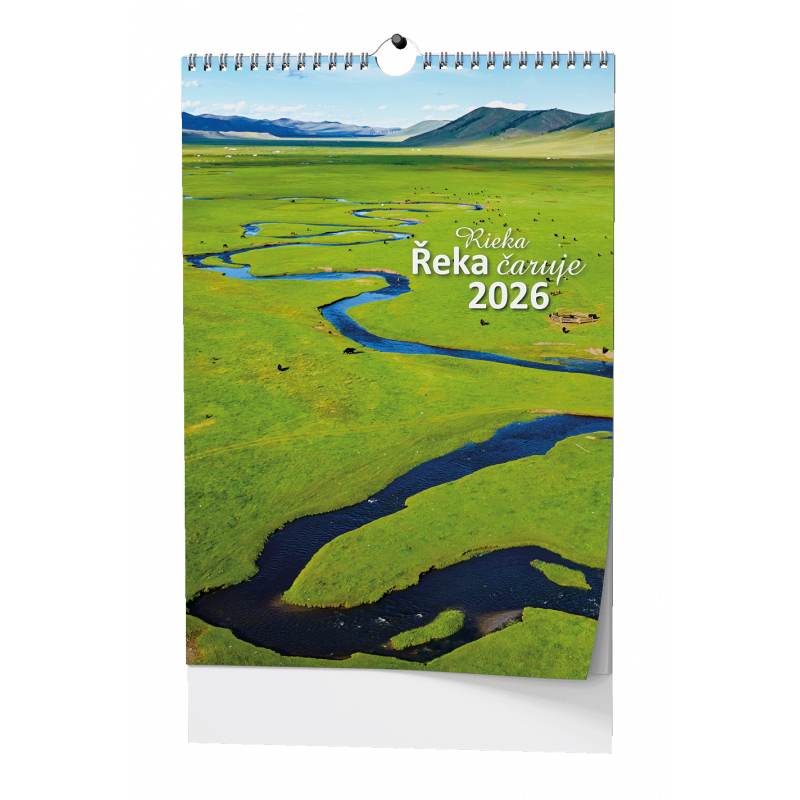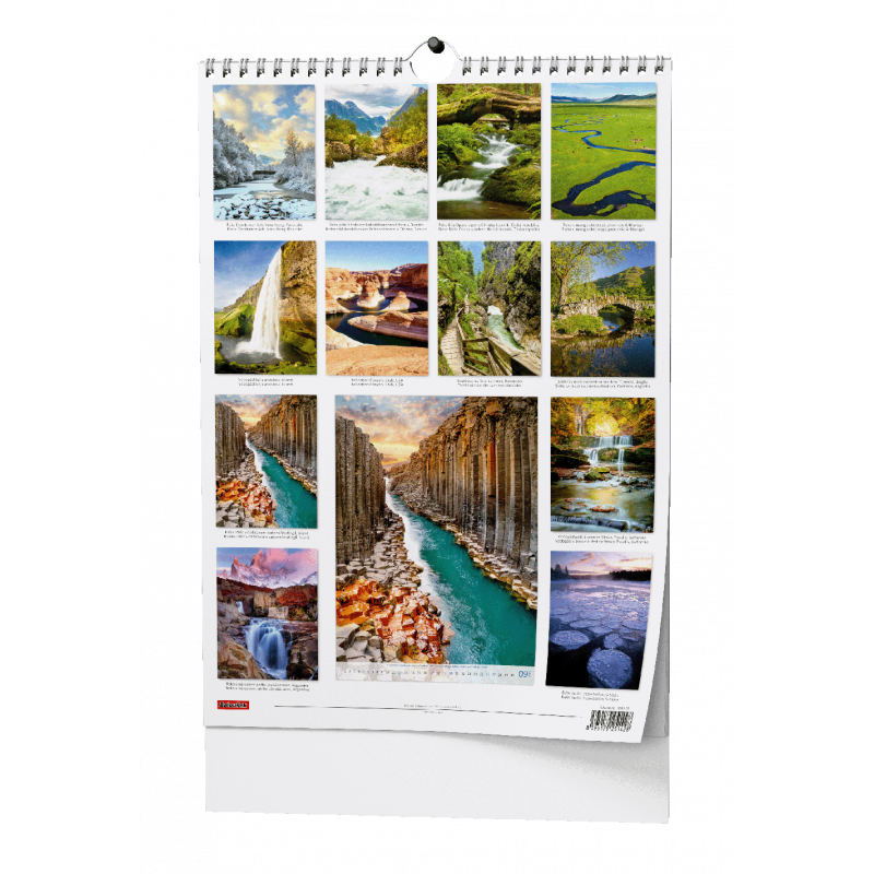 Nástěnný kalendář s obrázky působivých řek a přírodních scenérií.