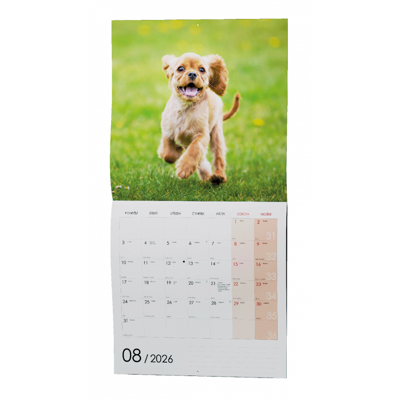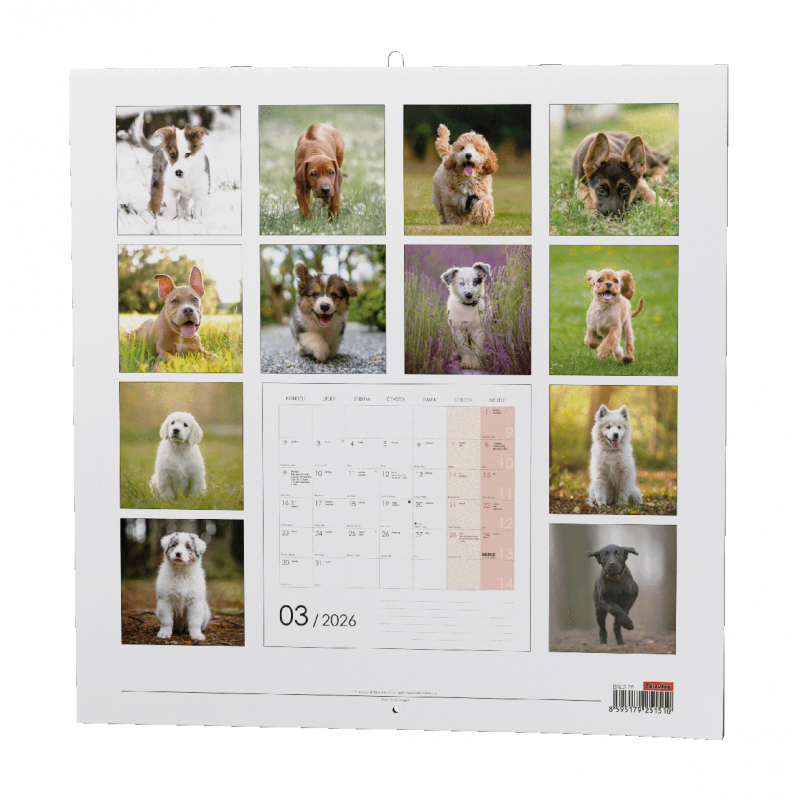 Nástěnný kalendář s měsíčním kalendáriem, v moderním formátu LP desky. Je věnován všem pejskařům.