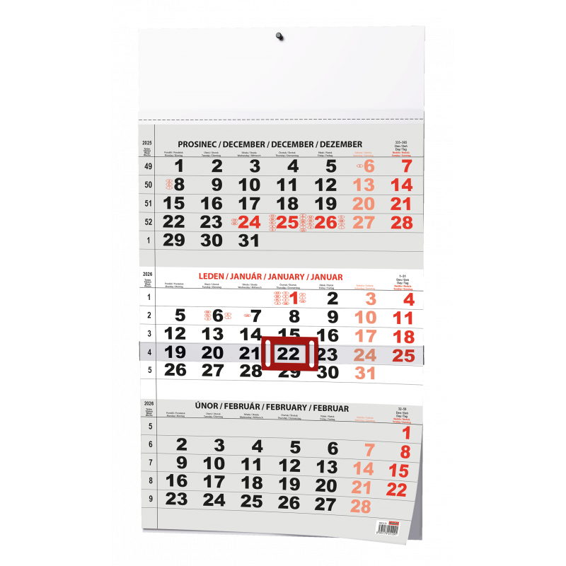 Praktický nástěnný kalendář s tříměsíčním kalendáriem a posuvným jezdcem vhodný do Vaší kanceláře.