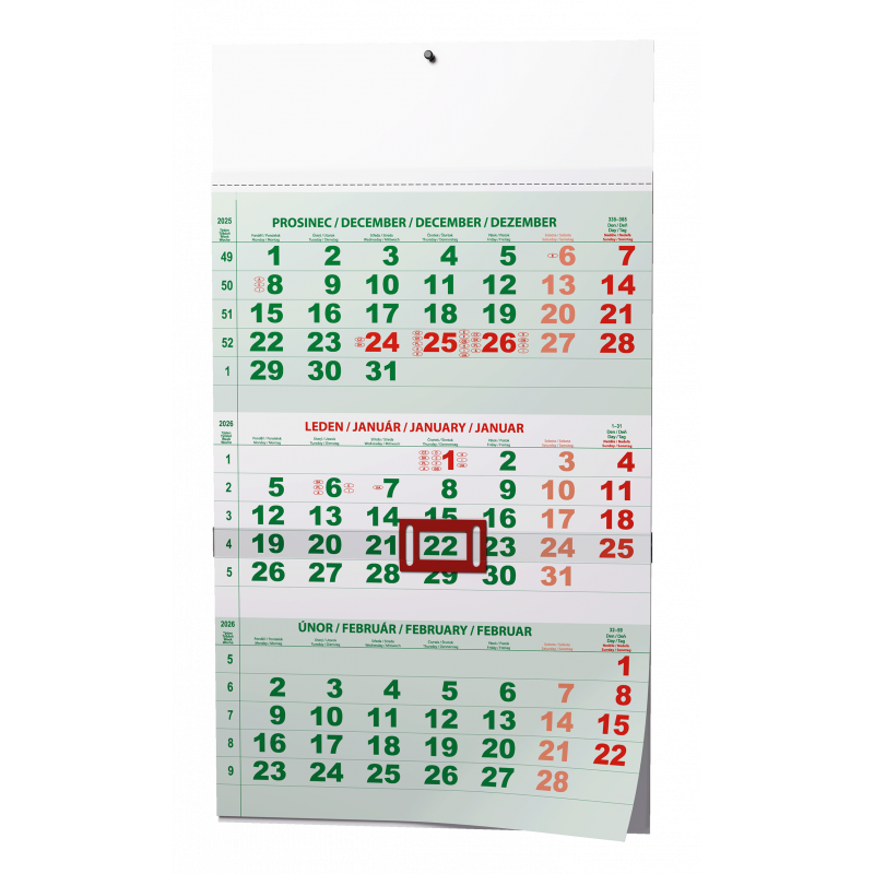 Praktický nástěnný kalendář s tříměsíčním kalendáriem a posuvným jezdcem vhodný do Vaší kanceláře.