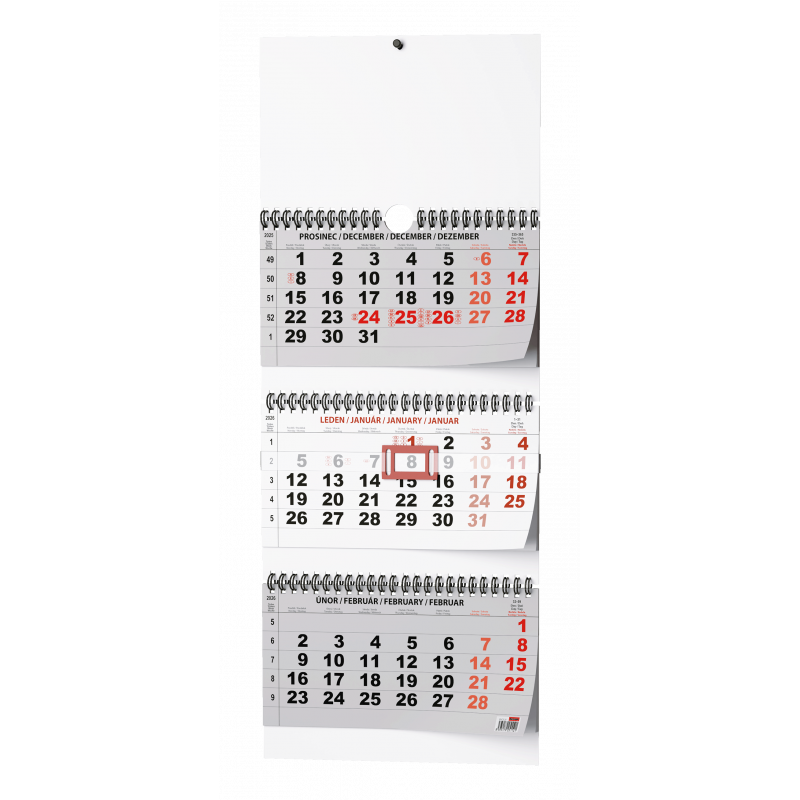 Praktický skládací nástěnný kalendář s tříměsíčním kalendáriem a posuvným jezdcem vhodný do Vaší kanceláře.