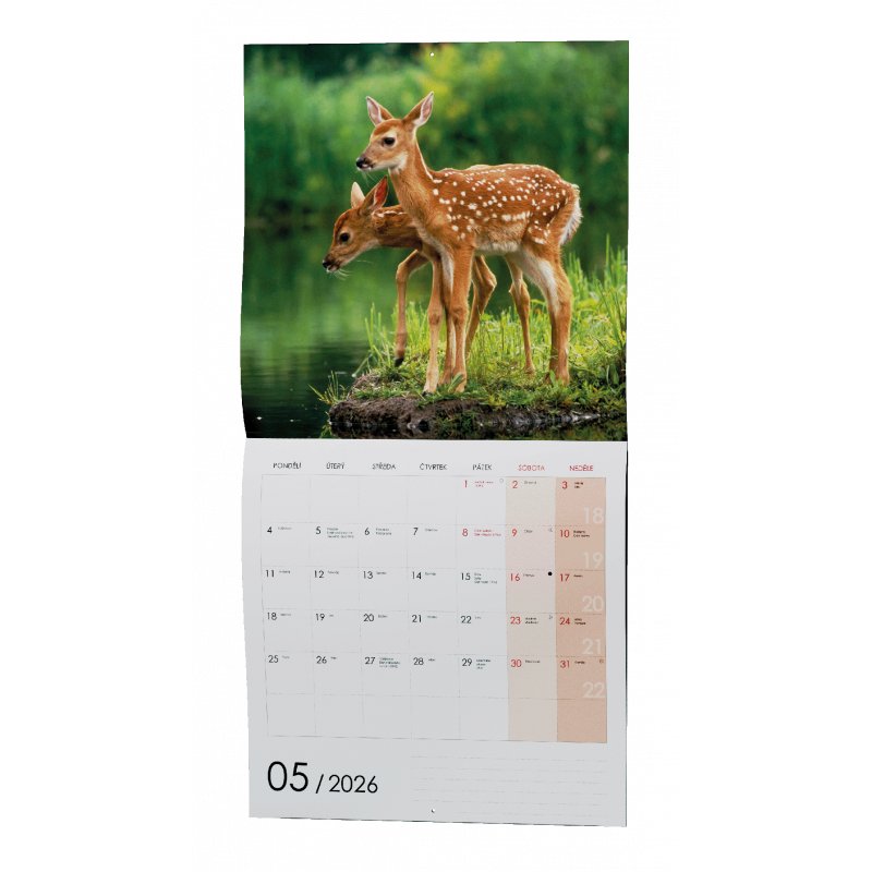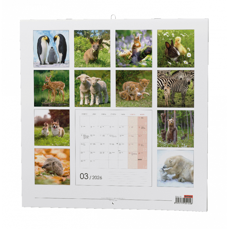 Nástěnný kalendář s měsíčním kalendáriem, v moderním formátu LP desky s originálními a vtipnými obrázky zvířat.