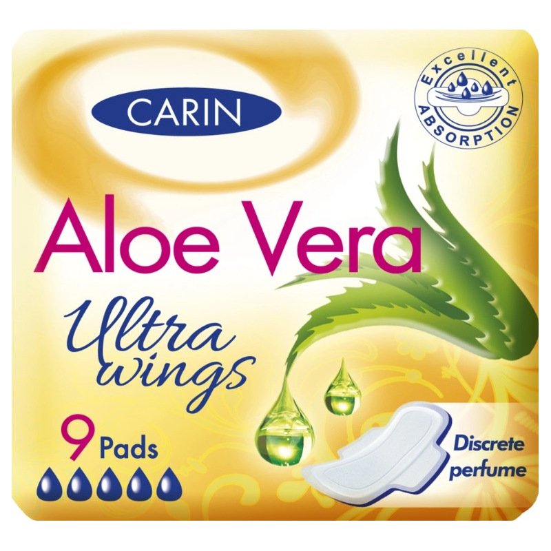 Vložky Carin Ultra Wings jsou tenké jednotlivě balené parfémované vložky s křidélky s oblíbenou vůní aloe vera. Mají svěží a bezpečný bavlněný povrch.