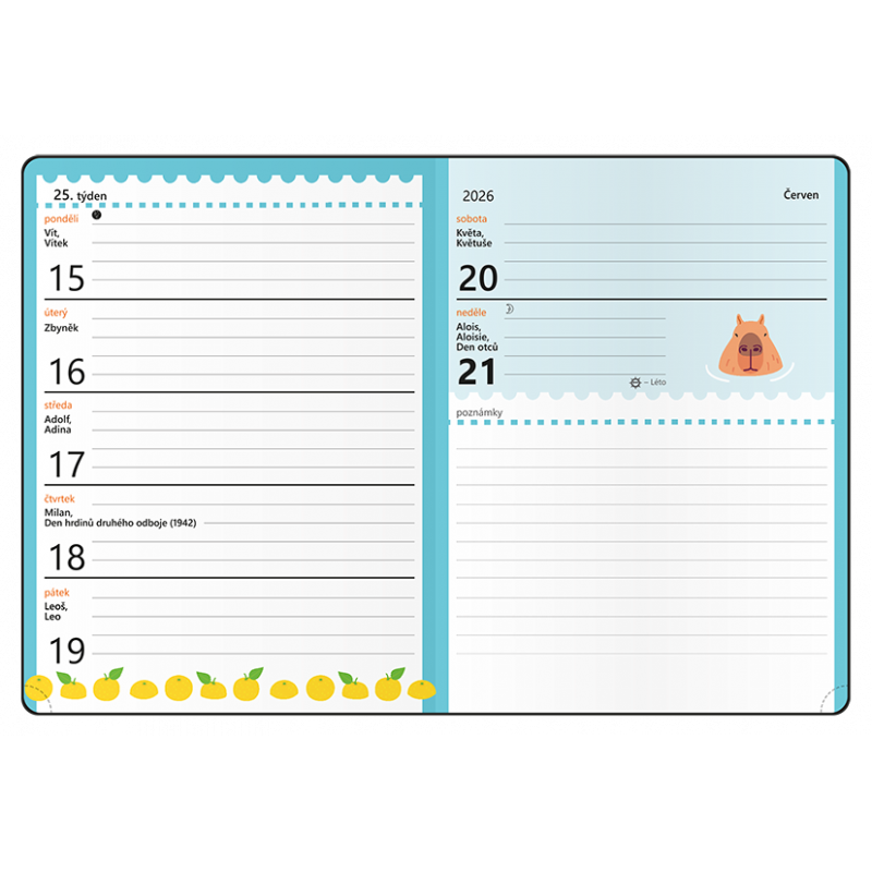 Školní diář s moderní barevnou grafikou pro školáky. Všechno důležité pro školáky pohromadě - rozvrh hodin, chemické prvky a také pravopis českého jazyka.