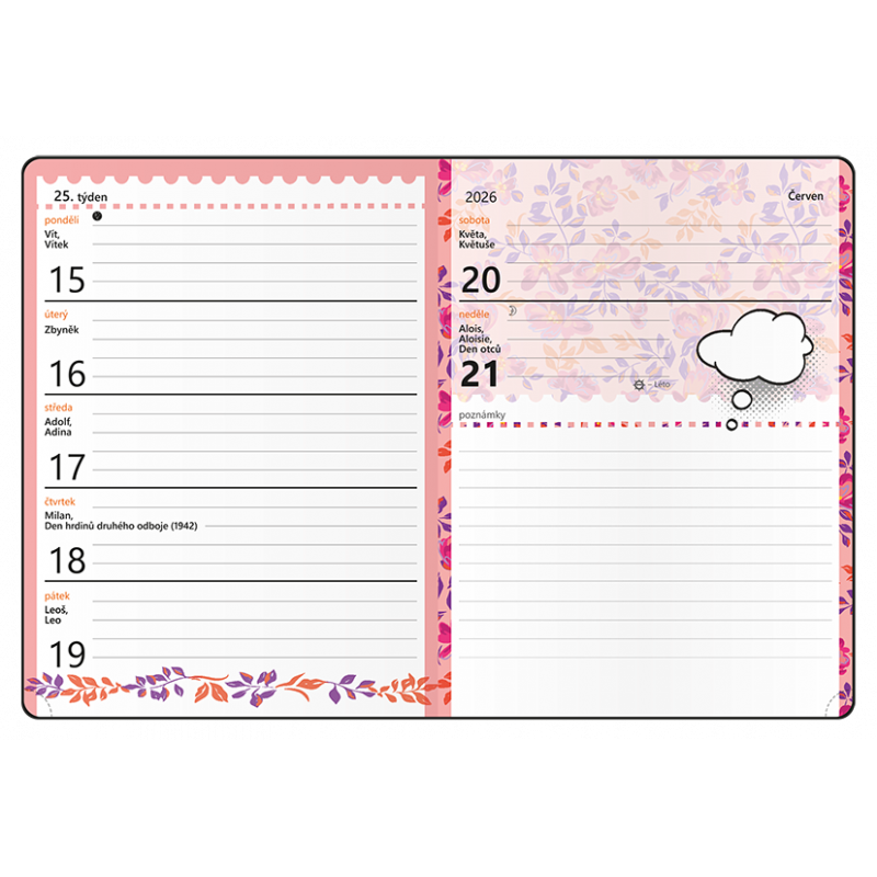 Týdenní diář - Student - V8 - lamino - kapesní - Růžový