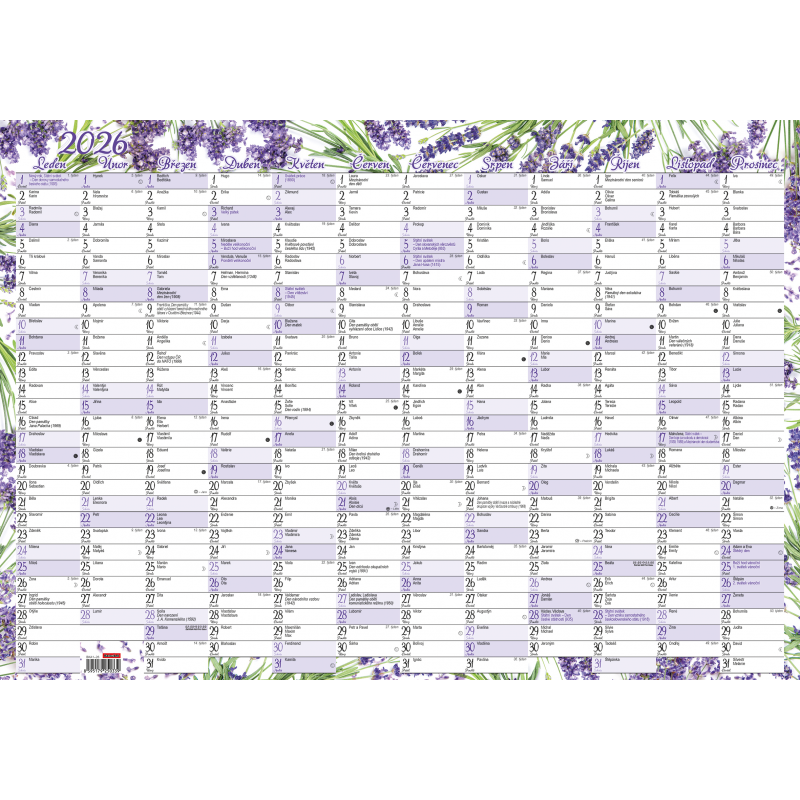 Nástěnný roční kalendář (600x420 mm) - Levandule