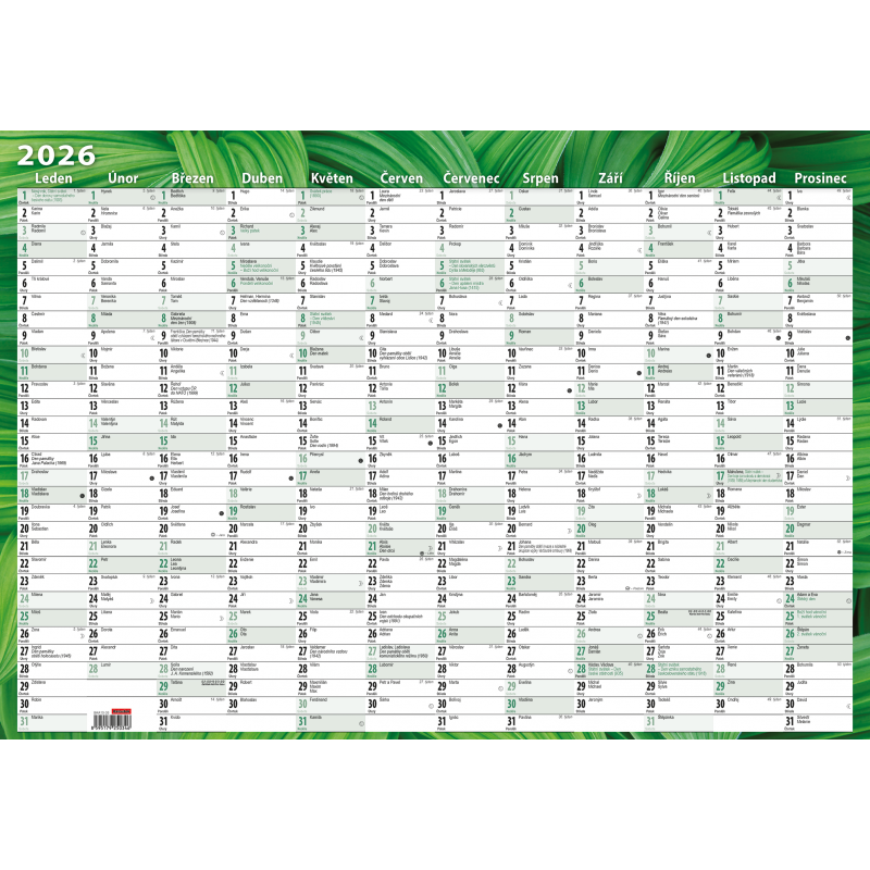 Nástěnný roční kalendář (600x420 mm) - Listy