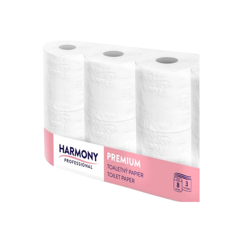 Toaletní papír Harmony, 3-vrstvý, 8ks v balení, celková délka v roli 29,5 metru
