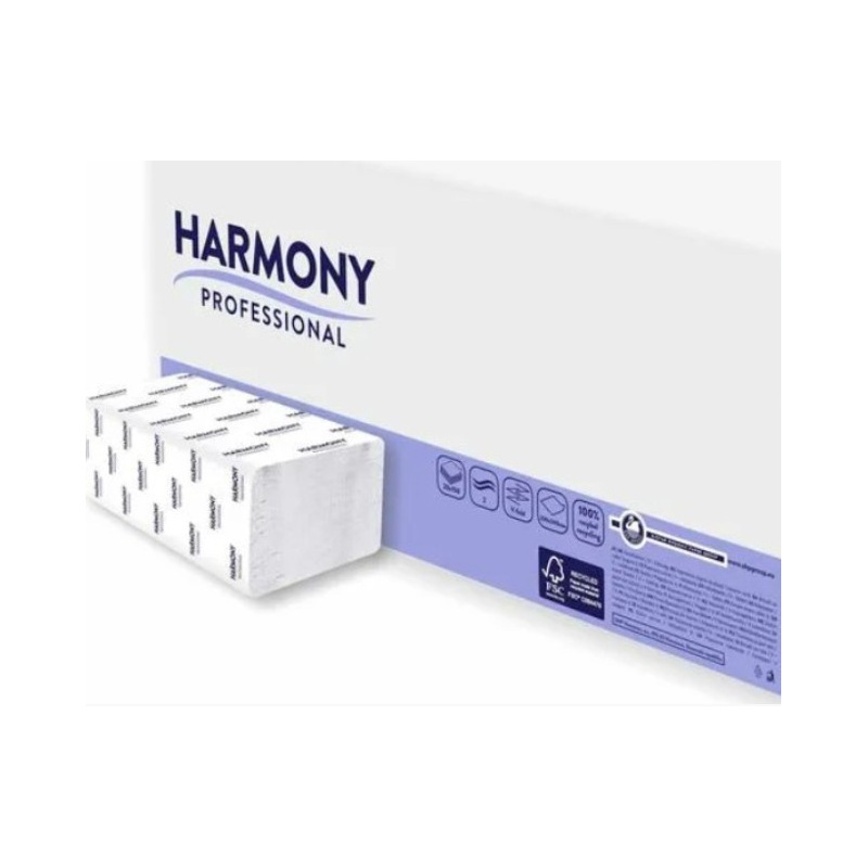 Papírové ručníky ZZ 2-vrstvé bílé, 3000ks, 24x23cm Harmony Recyklované