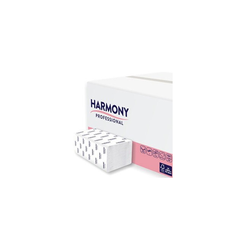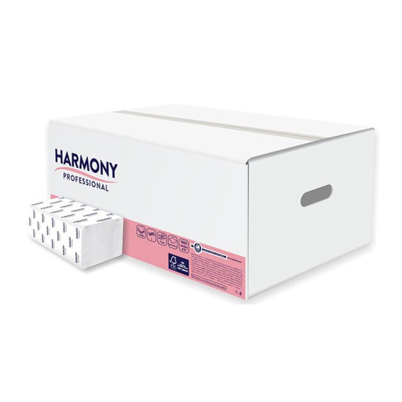 Harmony Professional - papírové ZZ ručníky - 2vrstvé, bílá celulóza, 3000 ks.