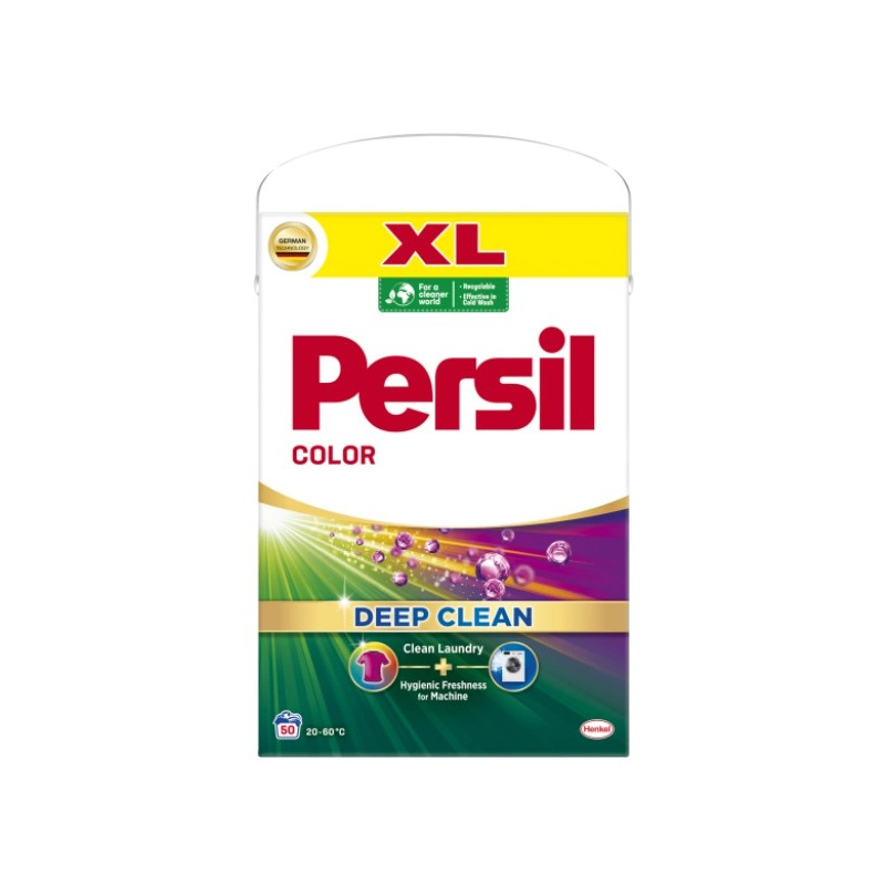 Persil prací prášek Color - užijte si dokonale čisté prádlo a zářivost barev vašeho oblečení při každém praní. Prací prášek na barevné prádlo pomáhá zachovat jas barev a zároveň poskytuje úžasný čisticí výkon a dodává pračce hygienickou svěžest díky novému složení. Naše složení v tomto prášku pro barevné prádlo je navrženo tak, aby udrželo barvy zářivé a poradilo si i s těmi nejodolnějšími skvrnami. Prací prostředek, který je účinný vůči skvrnám, dokáže být šetrný vůči barvám. Koncentrovaný prací prostředek je navržený tak, aby zajistil více než jen svěží oblečení, působí ještě hlouběji v mechanismu pračky a účinně odstraňuje nepříjemné pachy.