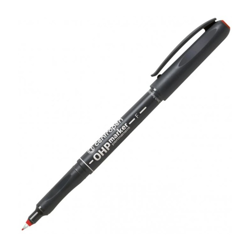 Popisovač CENTROPEN 2636 F OHP PERMANENT Marker je jeden z nejprodávanějších výrobků značky Centropen již po několik desetiletí. Je tak vhodnou volbou pro každého, kde potřebuje léty odzkoušený a kvalitní výrobek na většinu povrchů (fólie, sklo, porcelán, kov, film, fotky, plasty, ...). Ideální ke psaní a rýsování na transparentní fólie.