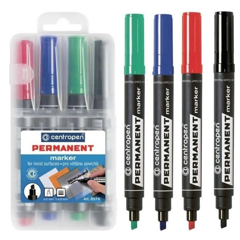 Popisovač CENTROPEN 8576 PERMANENT Marker je jeden z nejprodávanějších výrobků značky Centropen již po několik desetiletí. Je tak vhodnou volbou pro každého, kde potřebuje léty odzkoušený a kvalitní výrobek na většiu povrchů (dřevo, kov, plasty, ...).