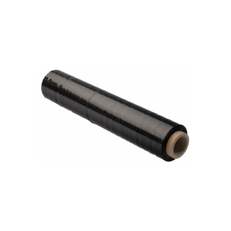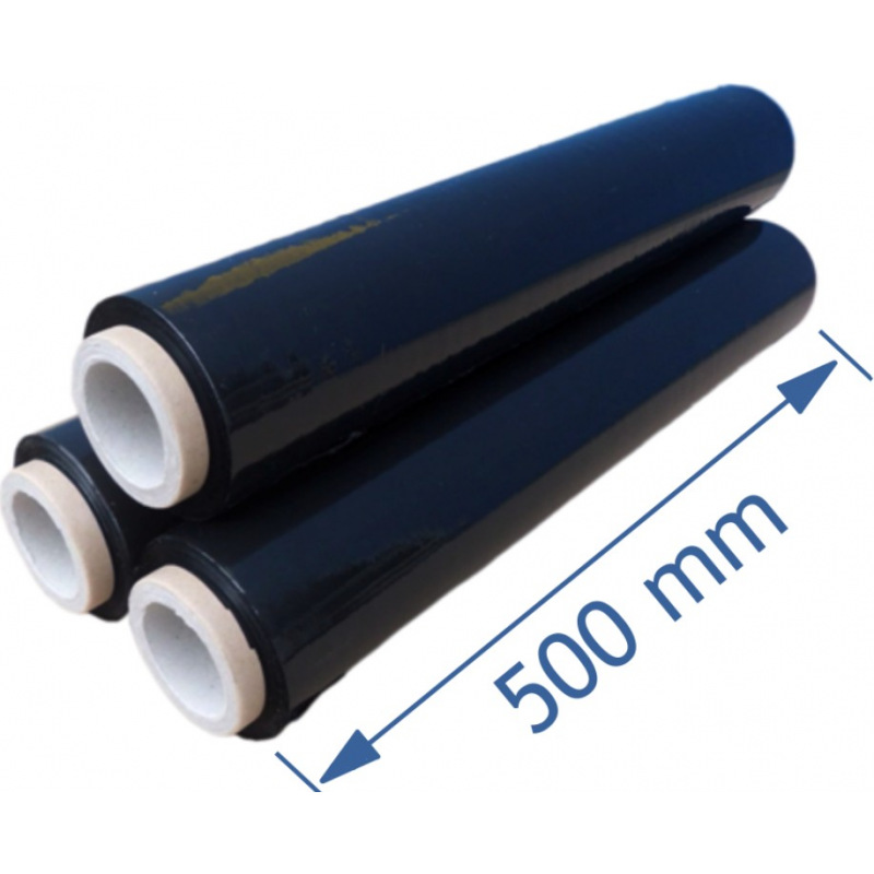 Pevná strečová fólie s vysokou pružností odolná proti protržení. Barva černá, šířka role 500mm, tloušťka fólie 0,023 mm, váha role 2,25 kg, váha dutinky 0,25 kg, fólie není určena pro přímý styk s potravinami.