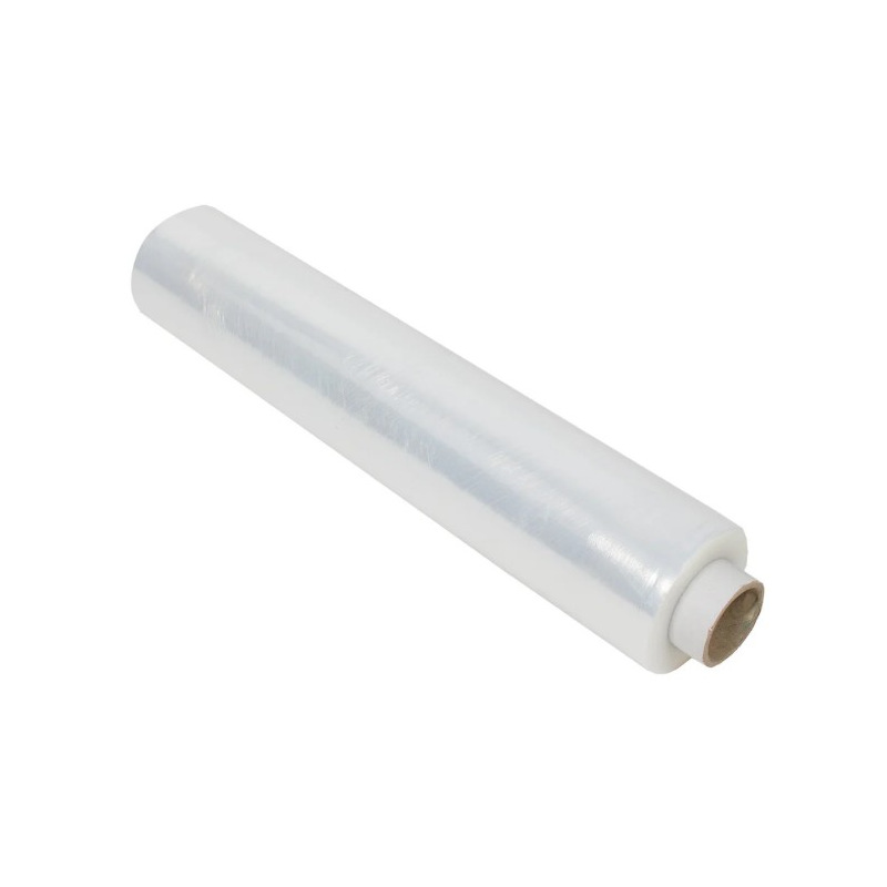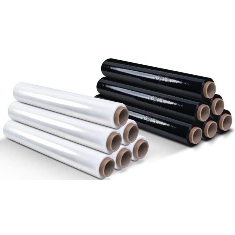 Pevná strečová fólie s vysokou pružností odolná proti protržení. Barva transparentní, šířka role 500mm, tloušťka fólie 0,023 mm, váha role 2,25 kg, váha dutinky 0,25 kg, fólie není určena pro přímý styk s potravinami.