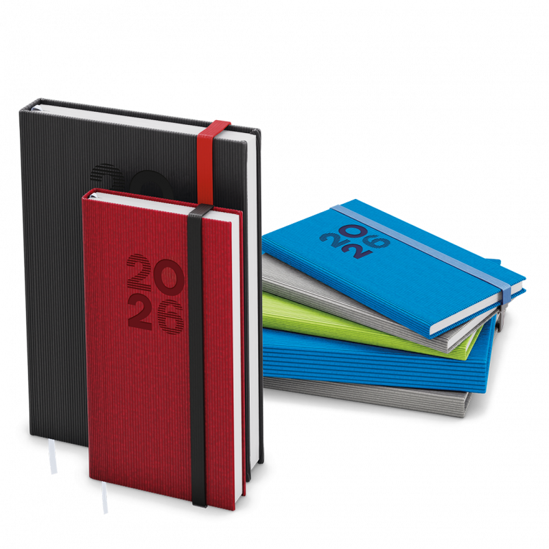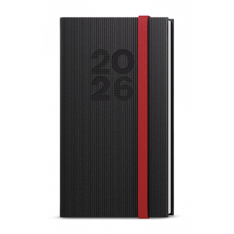 Kapesní týdenní diář v černé barvě ze strukturovaného materiálu a s gumičkou. Jednoduchost, která neomrzí. Moderní doplněk do každé kapsy. Diář má velký prostor pro poznámky a plánování.