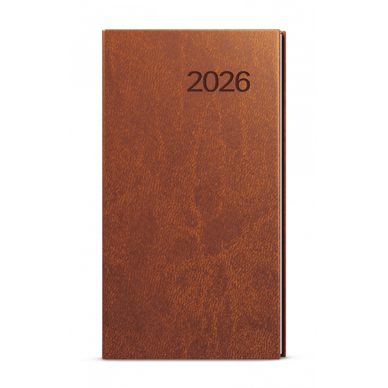 Kapesní týdenní diář v hnědé barvě je vyráběný z jemné hladké vivelly. Trendy a praktický doplněk do každé kapsy. Diář má velký prostor pro poznámky a plánování.
