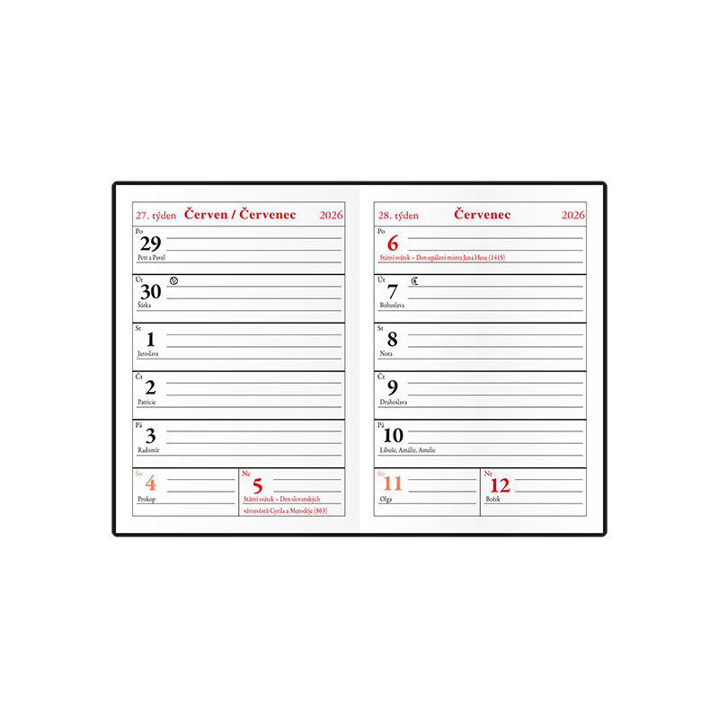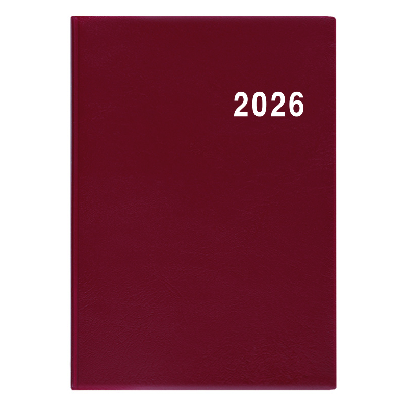 Jednoduchý a praktický týdenní diář vyrobený z jemného hladkého materiálu s polomatným povrchem v barvě bordó. Ideální pro každého, kdo si oblíbil měkkou šitou vazbu.