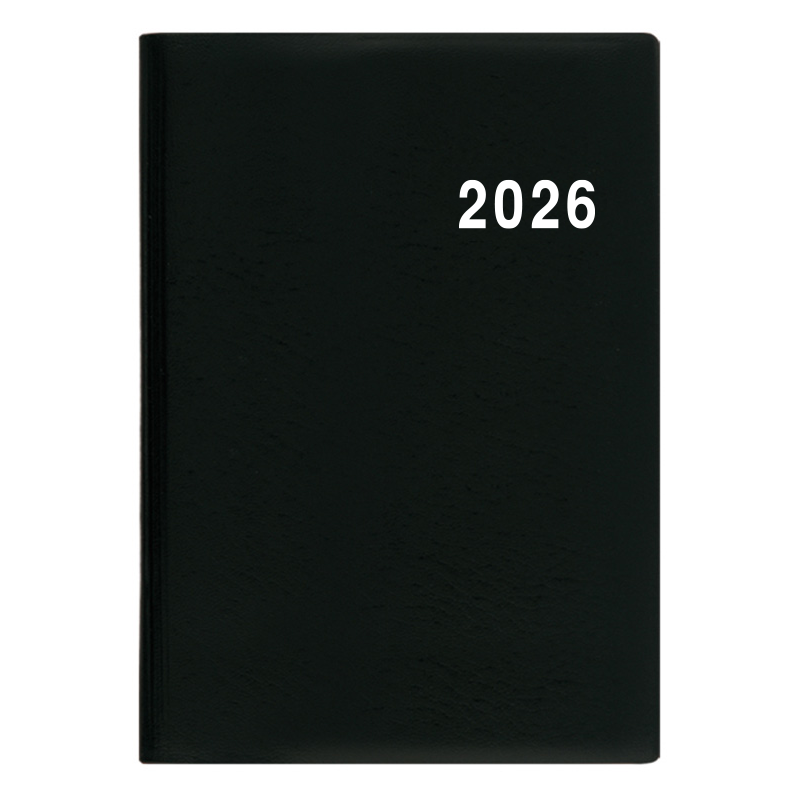 Jednoduchý a praktický týdenní diář vyrobený z jemného hladkého materiálu s polomatným povrchem černé barvy. Ideální pro každého, kdo si oblíbil měkkou šitou vazbu.