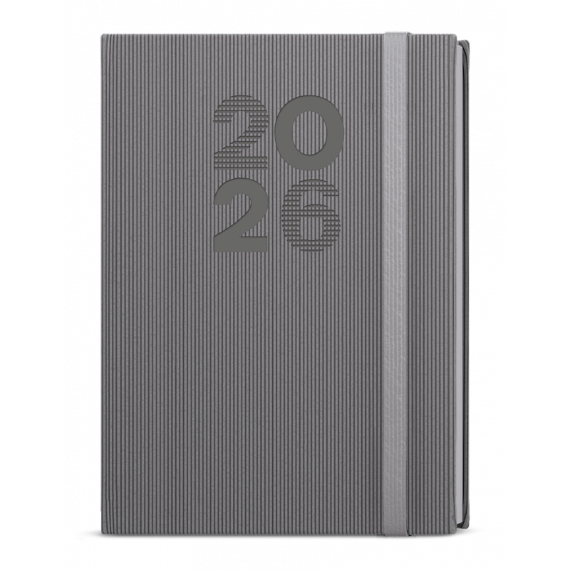 Týdenní diář formátu A5 vyrobený ze strukturovaného materiálu v šedé barvě a s gumičkou. Oblíbená grafika vnitřního bloku Vám pomůže účelně plánovat Vaše dny.
