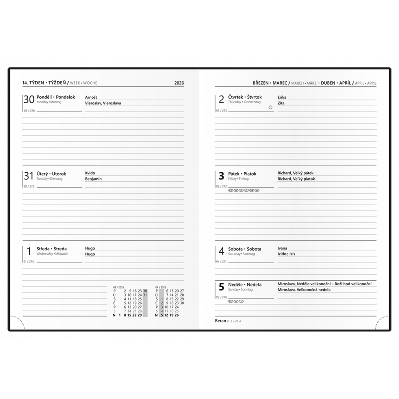 Týdenní diář - Prokop - Vivella s ražbou - B6 - petrolejová - Kolo