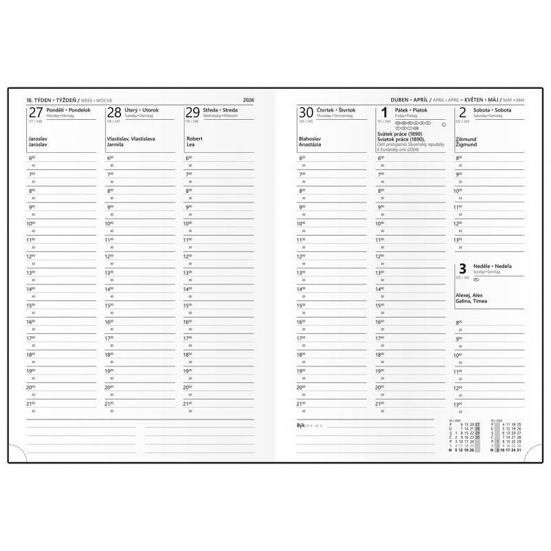 Týdenní diář ve formátu A4 v jednoduchém stylu a v hladkém provedení. Skvělý formát diáře Vám usnadní naplánovat jakékoli schůzky a úkoly na celý týden.