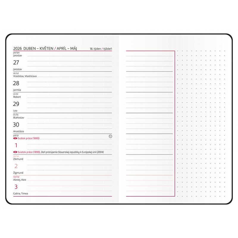 Objevte spojení stylu a praktičnosti s naším 18měsíčním diářem! Elegantní barevná obálka s parciálním lakem upoutá na první pohled, zatímco praktická stužka a gumička udrží vaše plány pod kontrolou. Mějte své cíle a úkoly vždy po ruce – ať jste kdekoli. Perfektní společník na více než rok, který vnese do každého dne inspiraci a řád.