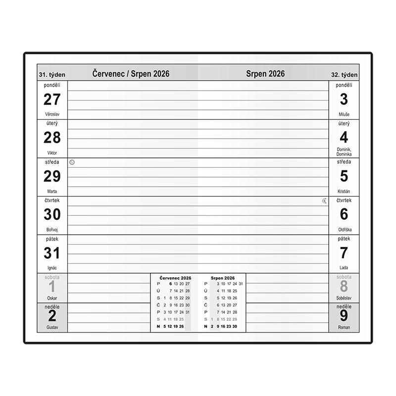 Jednoduchý a praktický týdenní diář vyrobený z jemného hladkého materiálu s polomatným povrchem modré barvy. Ideální pro každého, kdo si oblíbil měkkou šitou vazbu.