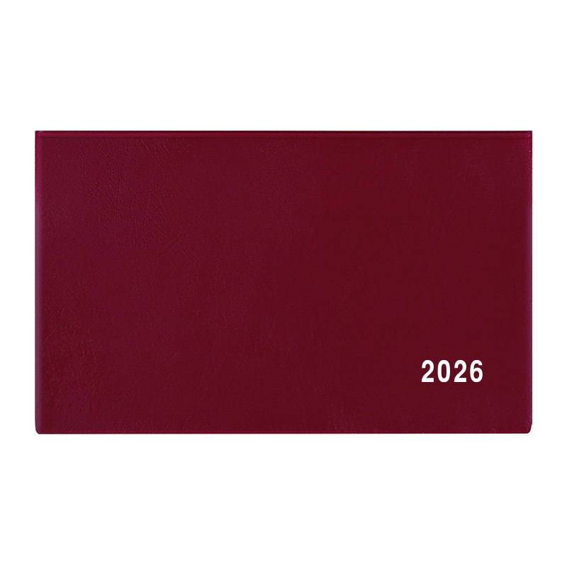 Jednoduchý a praktický týdenní diář vyrobený z jemného hladkého materiálu s polomatným povrchem v barvě bordó. Ideální pro každého, kdo si oblíbil měkkou šitou vazbu.