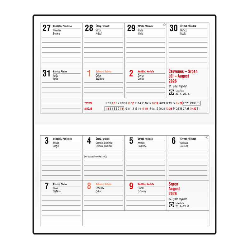 Týdenní diář - Cyril - PVC - bordó