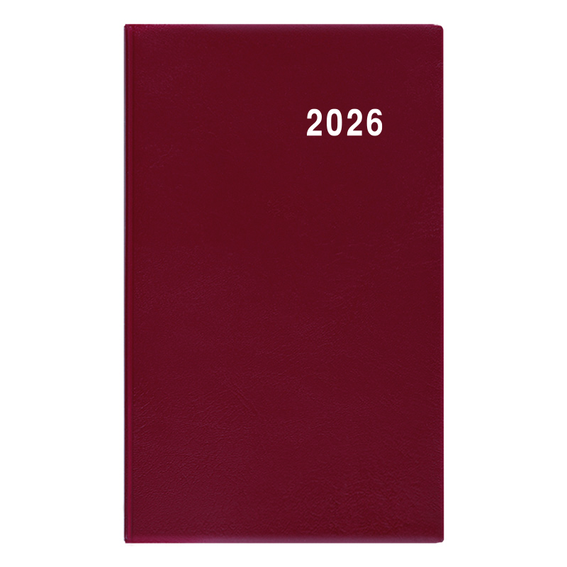 Jednoduchý a praktický týdenní diář vyrobený z jemného hladkého materiálu s polomatným povrchem v barvě bordó. Ideální pro každého, kdo si oblíbil měkkou šitou vazbu.