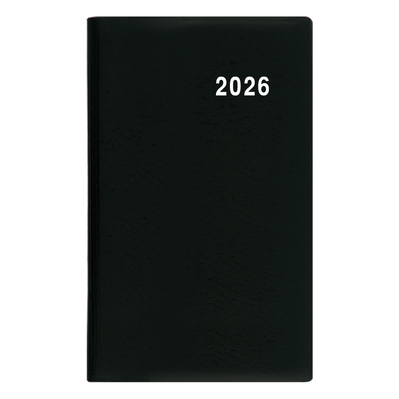 Jednoduchý a praktický týdenní diář vyrobený z jemného hladkého materiálu s polomatným povrchem černé barvy. Ideální pro každého, kdo si oblíbil měkkou šitou vazbu.